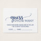 Ces calligraphies navales devinent combien de cartes de jeu baisers sont une activité amusante pour une douche nuptiale élégante. Remplissez un bocal avec Hersey's Kisses et demandez à vos invités de deviner combien de bonbons sont dans le bocal. La réponse la plus proche gagne un prix ! Le design blanc et bleu présente une typographie rustique chic et un coeur romantique.