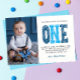 Carte de remerciements de premier anniversaire de garçon moderne, simple et élégant. Conception avec script brossé un, message de remerciement et une photo.