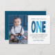 Carte de remerciements de premier anniversaire de garçon moderne, simple et élégant. Conception avec un script branché un, message de remerciement et une photo.