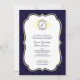 Le bleu marine et en filigrane jaunes/brocard encadrent le faire-part de mariage comportant un monogramme
