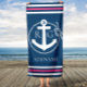 Ancre Navy Pink Stripes corde Serviette de bain personnalisée.