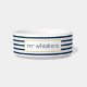 Fertigen Sie diese klassische, gestreifte Haustierschüssel mit dem Namen Ihres Pelzbabys besonders an. Ausrüstungsbeschreibungsseemarinestreifen und personalisierter Name.