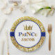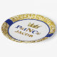 Ist königlicher Prinz-Teller der Marine und des Goldes für Babyduschen oder Geburtstags-Partys groß. Er haben einen Goldfunkelnd Hintergrund, eine Krone und einen Raum, Ihren eigenen Namen zu addieren.