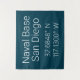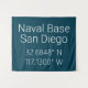 Längen- und Breitengradkoordinaten für die Marinebasis San Diego in Kalifornien - auch bekannt als 32nd Street Naval Station, Zuhause des Pacific Fleet Roboto Style White Schriftart auf Navy blauem Hintergrund.