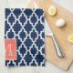 Ein marineblau-weißes marokkanisches inspiriertes Muster mit einem orangefarbenen Monogramm-Quadrat, um es mit Ihren Initialen anzupassen.