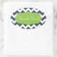 Marineblau Zickzack und grün. Monogramm Ovaler Aufkleber