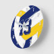 Wählen Sie Ihre eigenen Farben! Diese farbliche Wanduhr für den Sportraum eines Volleyballspielers zeigt das Bild eines einfachen Volleyballs, der mit blau, gold und weiß getafelten Panels - personalisiert mit der Jerseynummer des Athleten - die Farben der blau und goldfarbenen Paneele des Volleyballs und der Jerseynummer ändern kann. Klicken Sie auf den Knopf "Design bearbeiten" (oben) - Ziffeln des Uhrwerks können entfernt werden_zynes