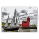Voilier passant devant un phare rouge en HDR.