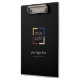 Einfaches Firmenlogo mit Slogan und Website-Adresse auf farblich bearbeitbarem schwarzen Hintergrund, keine Mindestbestellmenge und keine Einrichtungsgebühr, großes Business-Clipboard mit Logo.