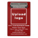 Es ist auch angenehm, eine maßgeschneiderte Büroausstattung zu haben, um Markenbewusstsein zu schaffen. Mini-Zwischenablage, die Sie anpassen können, um Ihren Firmennamen und Logo. Mini-Zwischenablage ist rot und Schriftart weiß. Passen Sie es an, indem Sie Ihr Firmenlogo hochladen, Ihren Firmennamen, Ihre Adresse, Telefonnummer, E-Mail und Website oder Social Media-Seite eingeben. Karo des Erscheinungsbildes nach dem Hochladen von Logos und Texttipps. Wenn es Ihnen gefällt, können Sie jetzt Ihre Bestellung aufgeben. Wenn Sie Änderungen vornehmen müssen, wie z.B. die Größe und das Verschieben des Logos, um in diese Miniklipboard-Vorlage zu passen, und nach Ihren Wünschen, klicken Sie auf Weitere anpassen. Klicken Sie auf Fertig, nachdem Sie Änderungen vorgenommen haben.