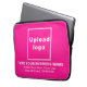 Anpassbare Notebookhülle, mit der Sie Markenbewusstsein schaffen. Die Inhalte sind Ihr Firmenlogo, Geschäfts- oder Firmenname, Adresse und Telefonnummer. Design ist ein weißer Text auf rosa Hintergrund. Bitte Karo des Erscheinungsbildes nach dem Hochladen von Logos und Schriftzeichen. Wenn Ihnen das Aussehen gefällt, können Sie jetzt Ihre Bestellung aufgeben. Wenn Sie das Logo und die Texte ändern und verschieben müssen, um auf diese Laptop-Hülle oder auf andere Größen, die Sie wählen, passen Sie bitte das Design-Tool an. Sie können auch andere Änderungen vornehmen, die Ihren Wünschen entsprechen, z.B. die Änderung der Hintergrundfarbe, der Schriftart und des Schriftartes. Schützen Sie Ihren Laptop und tragen Sie ihn bequem bei, während Sie Ihr Unternehmen werben oder Ihren Markennamen für Ihre Kunden oder Kunden bekannt machen.