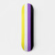 Nichtbinäre können sich als Personen mit zwei oder mehr Geschlechtern identifizieren; ohne Geschlecht, Geschlechtsverkehr oder Geschlechtsidentität, oder als drittes Geschlecht oder als andere Geschlechter eine Kategorie, die diejenigen einschließt, die ihrem Geschlecht keinen Namen geben. Jede Stripe-Farbe repräsentiert verschiedene Arten nichtbinärer Identitäten: Gelb für Menschen, die sich außerhalb des Geschlechterbinärs identifizieren, weiß für nichtbinäre Menschen mit mehreren Geschlechtern, lila für Menschen mit einer Mischung aus männlichen und weiblichen Geschlechtern, und schwarz für ältere Individuen.