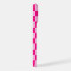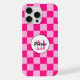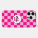 Checked Quadrate heißen rosa Retro Monogram iPhone Case. Personalisieren Sie Ihre individuelle Eingabe und Ihren eigenen Namen. Cooles, hintergrundgezogenes geometrisches Quadratmuster. Vintage Fliesen hellrosa und warmes rosa modernes Schachbrett.