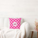 Markierte Quadrate hellrosa Retro Monogram Kissen. Personalisieren Sie Monogram mit Ihrem benutzerdefinierten Initial und Namen. Schachbrett Retro Zuhause Décor Throw Kissen Geschenk für sie. Cooles geometrisches Quadratmuster. Vintage Fliesen hellrosa und warmes rosa modernes Schachbrett.