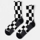 Checked Quadrate Schwarz-Weiß geometrische Retromuster Socken. Cooles, hintergrundgezogenes geometrisches Quadratmuster. Vintage Fliesen schwarz-weiß modernes Schachbrett.