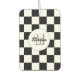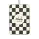 Markierte Quadrate Schwarz-Weiß Retro Monogram Auto Lufterfrischer. Schachte Quadrate geometrisches Retromuster Interieur Auto Zubehör - Geschenk für alle. Cooles geometrisches rechteckiges Muster in Retro. Vintage Fliesen Schwarz-weiß modernes Schachbrett. Personalisieren Sie Ihre individuelle Eingabe und Ihren eigenen Namen.