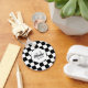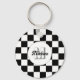 Markierte Quadrate Schwarz-Weiß Retro Monogram Schlüsselanhänger. Zubehör Geschenk für sie. Cooles geometrisches rechteckiges Muster in Retro. Vintage Fliesen Schwarz-weiß modernes Schachbrett. Personalisieren Sie Ihre individuelle Eingabe und Ihren eigenen Namen.
