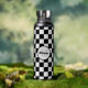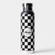 Checked Schwarz-Weiß-Retro Monogram Insulated Water Flasche. Gekreuztes geometrisches Retromuster Wasserflasche. Praktisches Geschenk für aktive Person. Cooles geometrisches rechteckiges Muster in Retro. Vintage Fliesen schwarz-weiß modernes Schachbrett. Personalisieren Sie Monogram mit Ihrem benutzerdefinierten Initial und Namen.