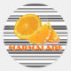 Marmalade Sticker, mit Orangen-Bild n' Kalligraphie auf schwarzen n' weißen Streifen Hintergrund.