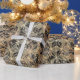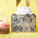 Eine dunkle Marmorstruktur in Schwarz und Grau mit goldenen Adern kombiniert mit einer Imitat goldenen Folie strukturiert geometrisch.