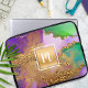 Ein funkelnd, vergoldetes, Imitat goldenes Folienquadrat mit einer Schriftzeichen-Monogramm-Initial überlagert einen reichen, goldfarbenen, lila, grünen, aqua- und rosa Aquarellhintergrund auf diesem eleganten, trendigen, gürteligen, monogrammatierten neopren Laptop-Ärmel. Macht jedes Mal, wenn ihr es benutzt, eine lustige und stilvolle Aussage. Dieser Laptop-Ärmel ist in drei Größen erhältlich: 15 Zoll, 13 Zoll und 10 Zoll. Ein großartiges Geschenk für einen Freund und auch für dich! Geben Sie einfach die Initial Ihrer Wahl ein und Sie können diese individuelle Neopren-Laptop-Hülle ganz einfach personalisieren. Bitte schicken Sie mir eine Nachricht mit Fragen oder Wünschen.