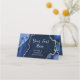 Diese elegante und glamouröse Hochzeitsfeier-Platzkarte besticht durch einen marineblau-marmorierten Hintergrund mit Imitaten, die auf silberne Glitzer hinweisen. Der Text kombiniert handgeschriebene Skripte mit modernen serifenlosen Schriftart für ein elegantes und raffiniertes Aussehen. Dies ist perfekt für Herbst- und Winterhochzeiten.