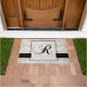 Marmorblick-Muster mit schwarzer eleganter Tür-Matte des Monogramm-R mit kundenspezifischem Text die Robertson-Familie