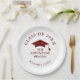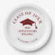 Die Ausrüstung der Graduationspartei. Maroon Adventure fängt Abschluss Paper Teller an. Lass das Abenteuer beginnen! Maroon und weiße Farben.