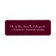 Modernes Retourenschild in einer Maronwein-Farbe. Personalisieren Sie den weißen Text, um Ihre Bedürfnisse zu Anzug. Bezauberndes Ende der Touch zu jedem Ihrer Korrespondenzen.