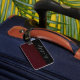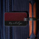 Dieses Gepäckanhänger ist mit einer Textur aus Maroon-Leder mit schwarzem Rahmen und einem Schriftart mit weißem Schrift versehen, den Sie mit Ihrem Namen personalisieren können. Tag ist zweiseitig. Ideal für Geschäftsreisen und reguläre Ferien.