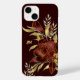 Maroon Rote Rose Gold Blätter Monogram Case-Mate iPhone 14 Hülle