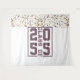 Erstellen Sie dauerhafte Erinnerungen mit einer Kamera und Ihrer Klasse ____ Sporttypografie Tapestry! Weißer Hintergrund, Mordtypografie, anpassbares Jahr, Imitat-Maroon und Goldkonfetti-Header ganz oben.