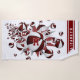 Dieses lustige Strandtuch zum Thema Basketball zeigt eine "Explosion" von variantenreichen Maronen und weißen Basketballbällen, Maronen und grauen Sternen auf weißem Hintergrund - ein Muster von winzigen weißen Polka Punkten bedeckt den Maronstern - und passt sich mit dem Monogramm des Athleten auf dem größten Basketball und dem Namen auf vertikal ausgerichteten Maronstreifen - von katz_d_zynes an