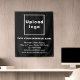 Tapisserie que vous pouvez customiser et l'utiliser comme panneau pour votre entreprise. Vous pouvez mettre votre nom d'entreprise et d'autres informations de votre entreprise. Customisez-le et affichez-le comme matériel de marketing pour annoncer votre entreprise ou pour promouvoir votre marque auprès des clients ou des clients. Affichez-le dans votre entrée d'affaires, sur le mur de votre réception, de votre hall ou dans tout endroit approprié visible par les clients ou les clients. Tapisserie personnalisable que vous pouvez utiliser pour développer la sensibilisation de marque. Les couleurs design sont des textes blancs sur arrière - plan noir. Pour customiser cette tapisserie, téléchargez votre logo d'entreprise, tapez votre nom d'entreprise, votre adresse, votre numéro de téléphone, votre adresse e-mail et votre site Web ou votre page de médias sociaux. Veuillez vérifier l'apparence après avoir téléchargé le logo et tapé des textes. Si l'apparence vous plaît, vous pouvez passer votre commande maintenant. Si vous avez besoin de redimensionner et déplacer le logo et les textes pour s'adapter à cette tapisserie ou à d'autres tailles que vous choisirez, s'il vous plaît changer dans l'outil de conception. Vous pouvez également effectuer d'autres modifications en fonction de l'apparence de cette tapisserie que vous préférez dans l'outil de conception, comme changer la couleur arrière - plan, la couleur de police et le style de police.
