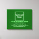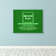 Imprimez sur toile que vous pouvez customiser pour mettre votre nom d'entreprise et d'autres informations de votre entreprise. Vous pouvez l'utiliser comme matériel de marketing pour annoncer votre entreprise ou pour promouvoir votre marque auprès de clients ou de clients. Impression de toile personnalisable que vous pouvez utiliser pour sensibiliser la marque. Customisez-le et affichez-le sur le mur de votre magasin, magasin, bureau, hall, réception, entrée ou dans un endroit approprié visible par les clients ou les clients. Les couleurs et la forme de conception sont des textes vert clair et blanc sur vert arrière - plan et format paysage forme rectangle. Pour customiser cette impression de toile, téléchargez votre logo d'entreprise, tapez votre nom d'entreprise, votre adresse, votre numéro de téléphone, votre adresse électronique et votre site Web ou votre page de médias sociaux. Après avoir téléchargé le logo et tapé des textes, veuillez vérifier l'apparence. Si l'apparence vous plaît, vous pouvez passer votre commande maintenant. Si vous avez besoin de redimensionner et déplacer le logo et les textes pour s'adapter à cette impression de toile, s'il vous plaît changer dans l'outil de conception. Vous pouvez également effectuer d'autres modifications dans l'outil de conception en fonction de l'apparence de cette impression de toile que vous préférez, comme changer la couleur arrière - plan, la couleur de police et le style de police.