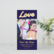 Liebe in marquee Beleuchtung auf einem dunkelblauen Hintergrund gibt diesem Save the Date Vintagen Funkeln und Glamour. Scrollen Sie nach unten, um die komplette Hochzeitskollektion zu sehen. Falls Sie zusätzliche Artikel für Ihre Veranstaltung benötigen, kontaktieren Sie uns bitte unter prettyfancyinvites@gmail.com mit Ihrer Anfrage.
