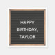 Fügen Sie Ihre eigene Nachricht hinzu, um die perfekte Party-Servietten für jeden Anlass zu erstellen. Diese Servietten zeigen ein klassisches Buchstabenschild in schwarzem Set in einem braunen Rahmen, in dem Ihre Nachricht in fett weißer Schrift dargestellt wird.