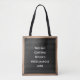 Erstellen Sie ein personalisiertes Geschenk oder fügen Sie Ihr eigenes lustiges Sprichwort zu dieser Tasche. Es hat das Aussehen eines Buchstaben-Brett-Stil oder Marquee-Zeichen in schwarzem Set in einem braunen Rahmen. Ihre Nachricht erscheint in fett weißer Schrift. Die Rückseite ist so gestaltet, dass sie wie die Rückseite des Schildes aussieht.