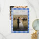 Elegant Rustic Blue Gingham Crest Monogram 2 Photo "Married & Bright" Card.