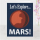 Mars Lasst uns Mars Card originales Design von Nisha Prabhu entdecken. Lassen Sie sich mit unserer "Let's Explore Mars"-Karte in den Kosmos stürzen! Dieses lebendige Design ist perfekt für den Raumbegeisterten oder den Träumer in Ihrem Leben und erweckt die inspirierend Schönheit der Mars. Ob Geburtstag, besondere Anlass, oder einfach nur eine Notiz, die sagt: "Ich denke an dich", diese Karte wird mit Sicherheit Fantasie und Verwunderung auslösen. Machen Sie es wirklich einzigartig, indem Sie Ihre persönliche Nachricht hineinfügen. Schicke deinen Lieben ein Stück des Universums und inspirier ihnen, nach den Sternen zu greifen!