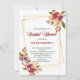 C'est une jolie invitation à la douche nuptiale fleurie pour toute saison, y compris l'hiver. Il est doté d'un élégant cadre double offset or, avec des bouquetiers rose marsala rouge et bleu ornés d'or en haut à droite et en bas à gauche. Votre texte personnalisé est en or foncé au centre. Le dos de l'invitation est solide assorti vert foncé.Beau! Assurez-vous de voir les produits correspondants dans notre magasin.