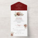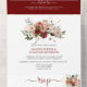 Marsala, Burgund, rot, grüne Herbstflora All In One Einladung
