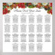 Ce chic tableau de 22 places de style boho est à la fois élégant et rustique. Il vous permettra de trouver facilement la bonne table à votre réception de mariage. Il présente un design floral vintage avec une bordure de roses d'automne et d'autres fleurs dans des teintes d'automne riches en profondeur, y compris marsala bordeaux, rouge, corail, rose, orange, or et prune. Peut accueillir 220 convives, 10 convives par table.