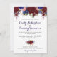 Rustikale Blütenhochzeit in marineblau und marsala. Ein wunderschöner Wasserfall von Marinebauern und Marsala-Bauern ragt über die Namen der Braut und des Bräutigams in elegantem, handgeschriebenem, marineblauen Kalligraphie-Schriftart, mit einer kleinen Marine und einem Marsala-Bouquet zwischen Datum und Ort. Matching Solid Marine Blue Rückseite.