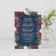 Marsala Floral Winter Rustic Wedding Invitations - dispose d'un arrière - plan rustique en bois bleu marine avec verdure, roses et autres éléments floraux dans les tons rose roux, marsala, bordeaux et plus. REMARQUE : cette invitation est prédimensionnée à 4,5 pouces par 6,25 pouces. Une taille 5x7 est également disponible dans cette conception. Afficher la collection trouvée sur cette page pour ce produit.