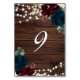 Marsala & Navy Blume Rustikales Holz 9 Tischnummer