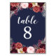 Navy Fall Marsala Peony Wedding Tischnummer Cards - Design bietet einen marineblau Hintergrund mit verschiedenen Pfannkuchen, Rose und anderen Blumenelementen in den Tönen Marsala, Bordeaux, Blau Rosa, Grau und mehr. Sehen Sie sich die passende Auflistung auf dieser Seite an, um die Suche nach Ihrem Ereignis abzuschließen.