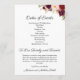 Marsala und Pink Floral Hochzeitsempfang Programm