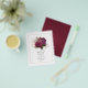 Vintage Marsala - bordeauxrot, schwarz und Rose goldblühende Hochzeitseinladung mit eleganter Typografie, die auf Ihre Veranstaltungsspezifikationen zugeschnitten ist. Umschläge sind nicht enthalten. Für dickere Einladungen mit Umschlägen und passenden Produkten zum selben Thema lesen Sie bitte die unten stehende Kollektion.