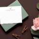 Mit Monogramm Mitteilungskarten in Weiß mit dem Anfangsnamen und dunkelrot. Eine elegante Notizkarte, die mit Ihrem Monogramm personalisiert ist und in einem einfachen Design ist.